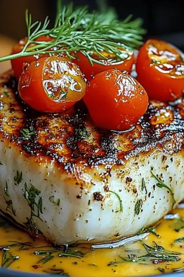 Succulent Grilled Cod with Roasted Tomatoes & Creamy Dill Sauce