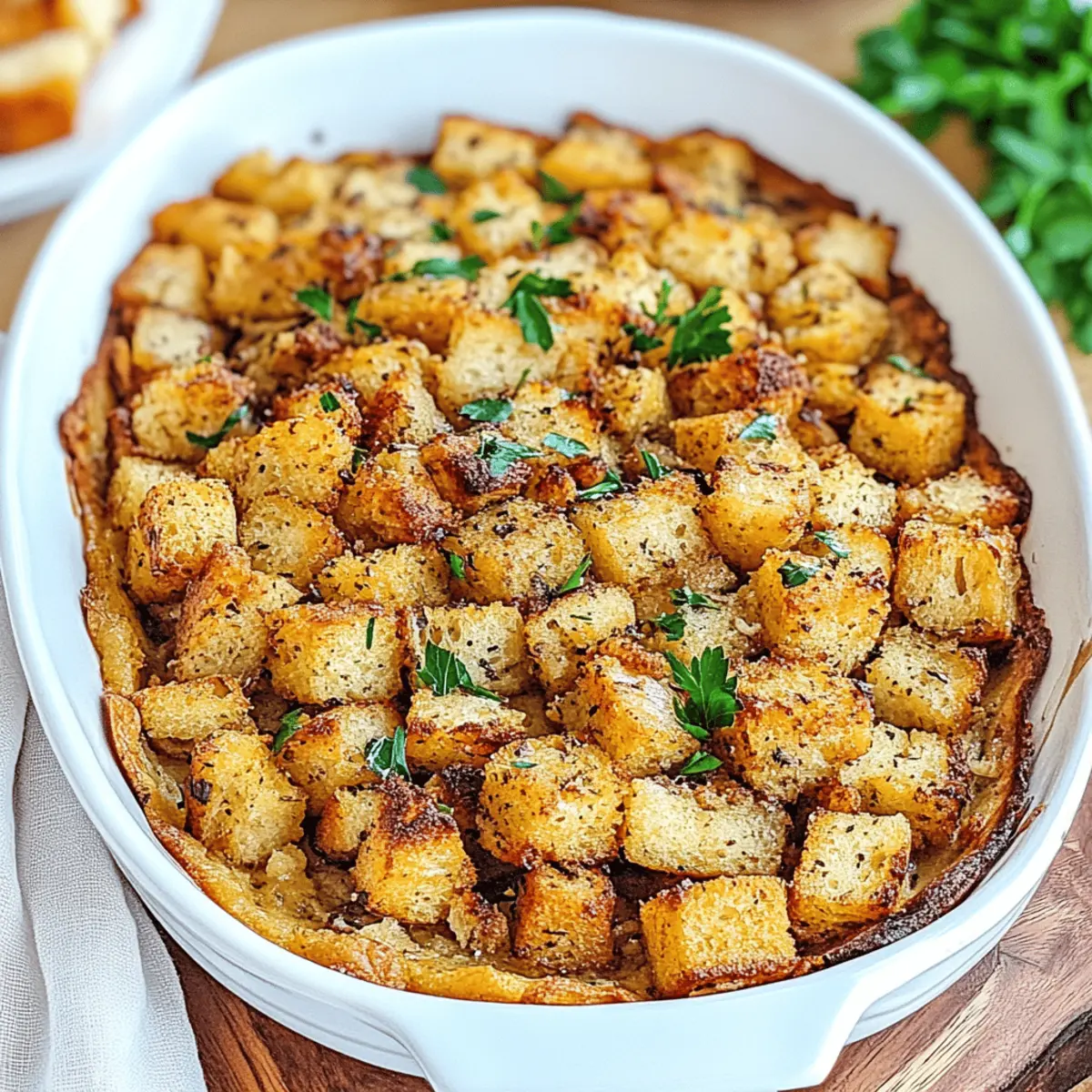 As I pulled open the oven door, the enchanting aroma of rosemary and sage wafted through my kitchen, wrapping me in a warm embrace reminiscent of cozy Thanksgiving gatherings. Today, I’m thrilled to share my favorite Gluten-Free Stuffing recipe—a delightful way to elevate any meal while ensuring everyone can indulge, regardless of dietary needs. Not only is this stuffing quick to prepare, fitting seamlessly into your busy schedule, but it's also a comforting crowd-pleaser that will have your guests coming back for seconds. With its hearty blend of gluten-free bread, fresh herbs, and savory vegetables, each bite feels like a little celebration. Curious about how to create this perfect side dish that captures holiday spirit all year round? Let’s dive in!