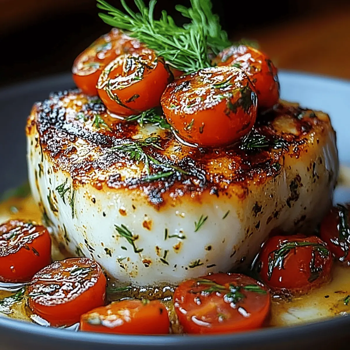 Succulent Grilled Cod with Roasted Tomatoes & Creamy Dill Sauce