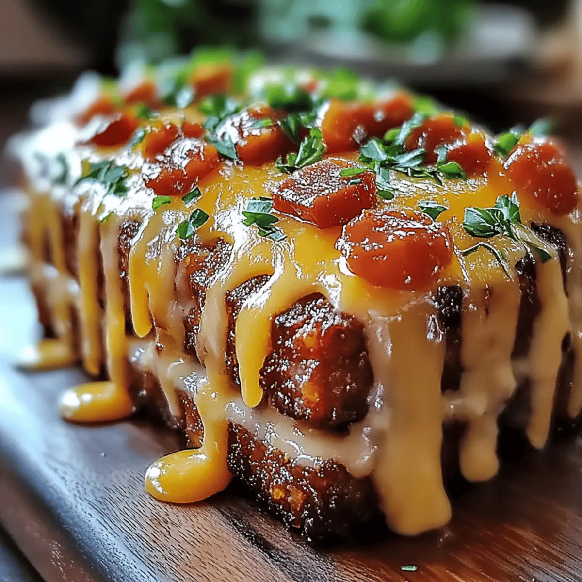 Simplicity: With just 15 minutes of prep time, you can make a delicious meal that’s quick and easy. Flavor Explosion: The combination of crispy bacon, savory ground beef, and gooey cheddar is an unbeatable fusion. Crowd-Pleasing: Perfect for both family dinners and gatherings, everyone will be asking for seconds! Versatile: Customize with your favorite toppings or sides for a unique twist. Comfort Food Elevated: This meatloaf transcends traditional recipes, offering a gourmet experience right at home. You’ll absolutely love it!