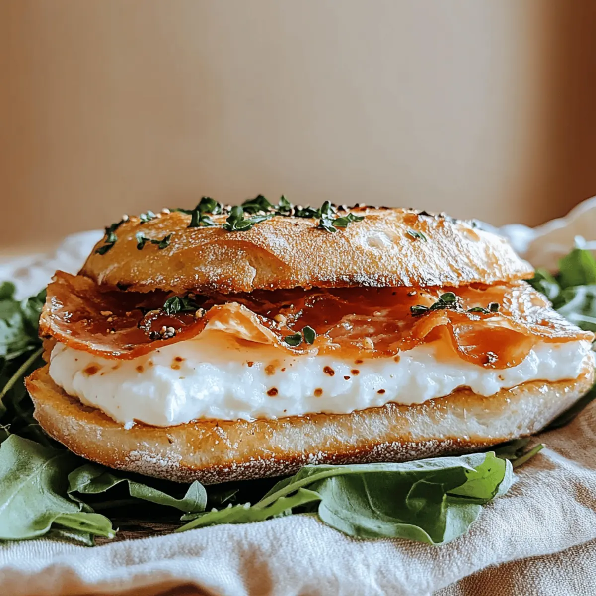 Place thin slices of creamy cheese—such as Brie or Goat cheese—over the prosciutto. This layer not only brings richness to your Prosciutto and Cheese Sandwich but also melts beautifully with the sandwich's warmth if you choose to grill it later. Take a moment to appreciate the melding of flavors!