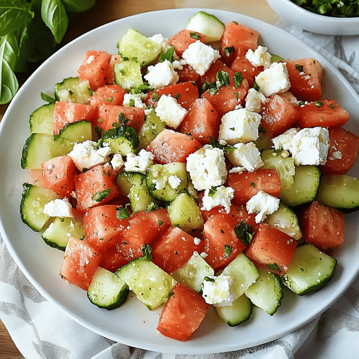 - Experiment with Herbs: Feel free to mix fresh herbs! Try using basil for a sweeter taste or mint for a refreshing kick to elevate your Watermelon Salad with Feta even more.