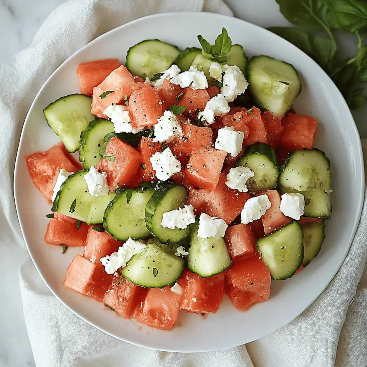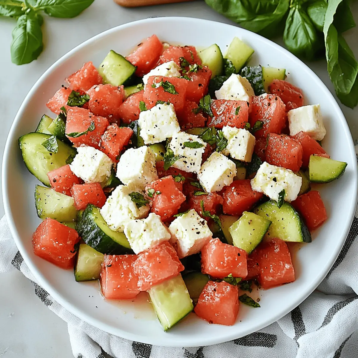 There’s something magical about summer, especially when you slice into a vibrant watermelon. The juicy pink flesh, sweet aroma, and refreshing crunch take me back to sun-soaked picnics and backyard barbecues. This Watermelon Salad with Feta is my go-to recipe when I want to capture those sunny vibes without spending hours in the kitchen. With just 15 minutes of prep, you get a delightful combination of sweet watermelon, creamy feta, and zesty lime that truly dazzles. Plus, it’s the perfect crowd-pleaser for gatherings or a light, healthy side dish for weeknight dinners. Who can resist that burst of color and flavor? Ready to elevate your summer salads? Let’s dive into this refreshingly simple recipe!