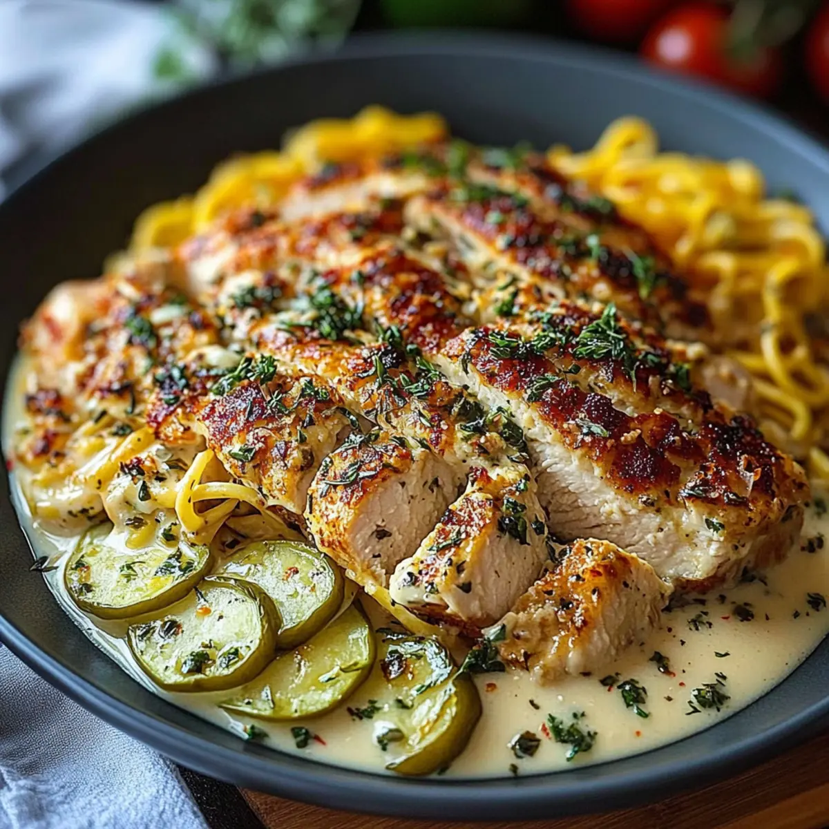 Indulgent Lemon Dill Chicken Alfredo with Whipped Feta Zucchini