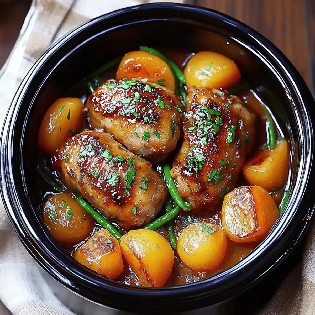 These Slow Cooker Honey Garlic Chicken ingredients are perfect for meal prep enthusiasts! You can marinate the chicken thighs in the honey garlic sauce up to 24 hours in advance, allowing the flavors to deepen and meld together beautifully. Additionally, feel free to chop the vegetables (potatoes, carrots, and onion) two days ahead and store them in the refrigerator to maintain freshness. When you're ready to cook, simply place the marinated chicken and prepped veggies in the slow cooker. Cook as directed, and to finish, stir in the green beans and cornstarch slurry about 20 minutes before serving. This way, you'll enjoy a delicious, homemade meal with minimal last-minute effort!
